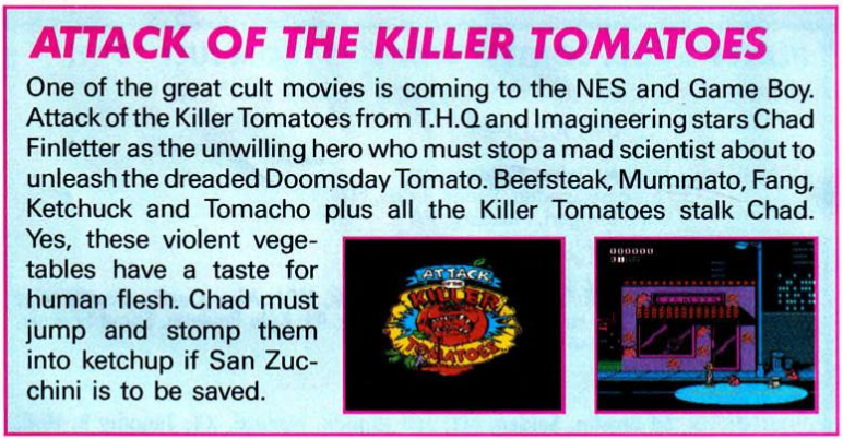 Confession time number two: I did a little dive into the press of the day hoping to find something interesting because there isn’t much to say about Attack of the Killer Tomatoes as a game. But I’ll try my best.