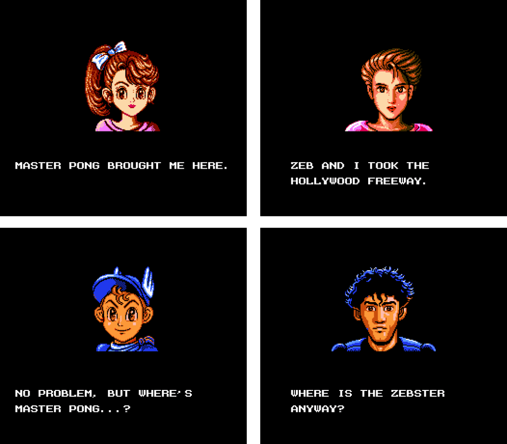 So Totally Rad is about “a most unprecedented regular dude” (the manual’s words, not mine) named Jake. Jake’s got a smokin’ hot girlfriend, apparently, and the two of them hang around some weird old magician named Zebediah Pong. Zeb teaches the two some “totally rad magic” (again, the game’s words, not mine), and then there’s a big guy with a sword that kidnaps the girlfriend and the girlfriend’s dad, which prompts Jake to go on his bogus journey. The plot isn’t important, but the cutscenes are funny for how much they reek of what was considered cool at the time. If you want to have a laugh at the expense of that poor Jaleco employee, Youtube a quick playthrough of the game and enjoy.