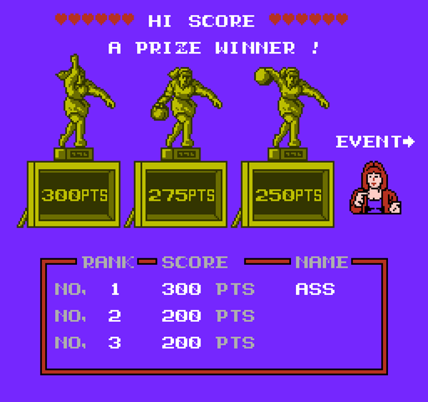 Championship Bowling on the NES is a game with three distinct ending screens. To see the “best” ending, the player needs to bowl a perfect game of 300 – that means a strike with each and every shot. While this may sound like a daunting task, Championship Bowling isn’t too tough of a nut to crack; you can produce the exact same results using the same methods every time. This one goes out to all the folks who’re desperate to see what that 300 ending looks like, just like I was – follow these steps and you’ll be the titular champion in no time.