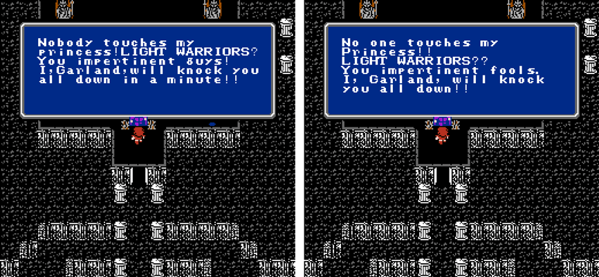 Final Fantasy has made its way onto a lot of platforms. Including the NES original, the game has been remade and ported a grand total of fourteen times; that’s almost as many versions of the game as there are mainline Final Fantasy titles! For the curious, the full list of ports goes like this: NES (1987), MSX2 (1989), WonderSwan Color (2000), Playstation (2002), i-mode (2004), Game Boy Advance (2004), EZWeb (2004), Yahoo! (2006), PSP (2007), iOS (2010), Android (2011), Windows Phone (2012), Nintendo 3DS (2015), and PC (2021). Note that this is only unique ports, and not simple re-releases of the game that slapped a pre-existing ROM onto an e-shop (such as the Wii’s Virtual Console). You certainly can’t call the first Final Fantasy inaccessible!