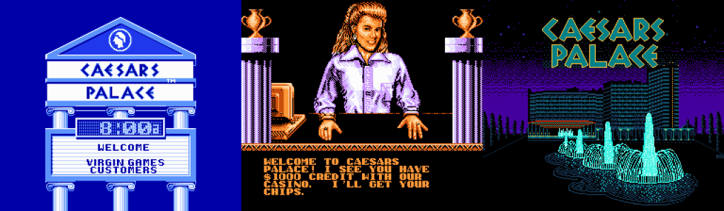 Caesar’s Palace is as straightforward as a gambling video game could possibly be. You’ve got slot machines, video poker, blackjack, roulette, and a big six money wheel to make your fortune. There are no characters to interact with, no interesting events like in Vegas Dream, or even other rooms to go into; what you see is what you get. Oh, but you can stare at the washroom doors. I guess that’s something.