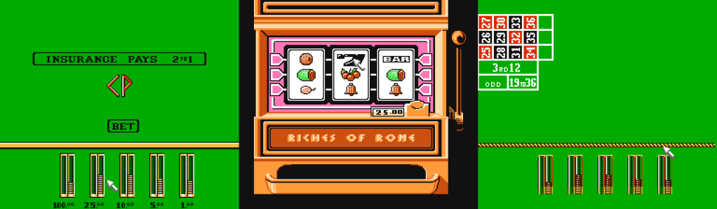 In-between bouts of seething, Caesar’s Palace on the NES makes me question why I’m even alive. Are we as human beings brought into this world to endure pain, and nothing more? Rage, despair, elation…such trivial emotions evaporate in the wake of the all-encompassing tedium Virgin Games unleashed upon this mortal coil. As I watch the slot’s reels spin for the hundredth, the thousandth, the millionth time, the sensation that is the cessation of desire and the end of suffering seeps into my bones that little bit more, permeating my consciousness. Am I inching ever closer to achieving nirvana? Or is this game just ass?