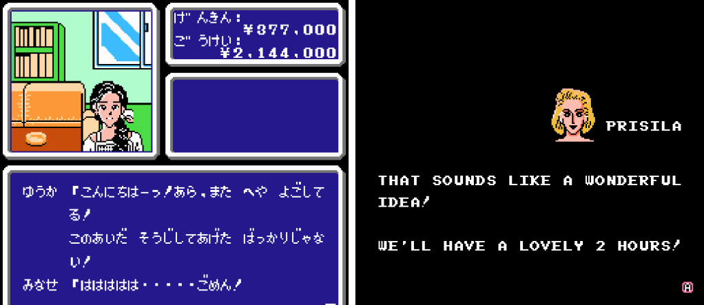 Amidst the “greed is good” mindset that was sweeping both nations, some weirdos made a Famicom game about playing the stock market: The Money Game (1988), which sold well enough to spawn The Money Game II: Miracle of Kabutocho (1989). Money Game II was then overhauled so significantly I’m not sure you could even call it the same game, and the resulting…whatever it was came to North America as Wall Street Kid in 1990.