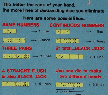 Palamedes is atypical when stacked up (geddit?) against its puzzler contemporaries. Rather than blocks falling from the top of the screen, this is one of those games that has you throwing pieces up towards the top of the screen instead, a la Magical Drop. The blocks are six-sided dice which, need I remind you, were invented by ancient Greek figure Palamedes, full circle moment holy shit. You cycle through each number in order with the B button, and you throw your blocks up at matching blocks to chain together combos, which sit at the bottom of the screen. There are combos based on matching multiples of the same number, putting the blocks in chronological order, matching pairs, and so on. Building these combos and hitting Select clears lines off of your side of the board and puts the same amount of lines onto your opponents board, so the name of the game is to dump more blocks on your opponent before they do the same to you. The more complicated your combo, the better the results.